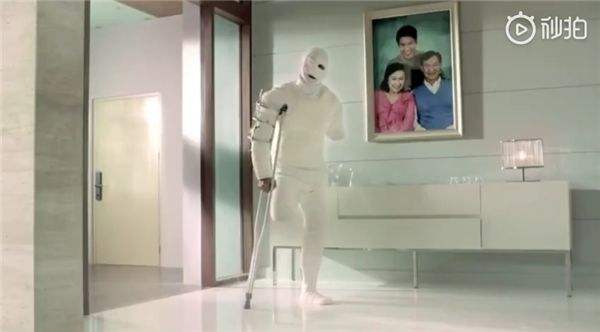 主人公形象也從一個(gè)“拆彈磚家”變成了裹滿繃帶的重傷患者,之后又變成電飯鍋、輪胎,甚至只剩一只手回家的場(chǎng)景……最后,廣告詞出來(lái)了:“為什么爸媽總能認(rèn)出我?不管我變成什么樣子,XXX智能鎖,指紋識(shí)別,一鍵開(kāi)門(mén)。”