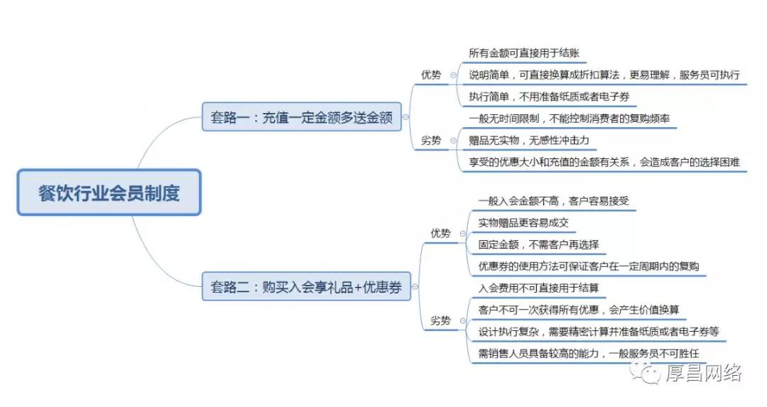 然后是商家,會員活動并不是簡單的充多少送多少,而是較復雜的入會送券玩法,那么這兩種套路有什么區(qū)別呢?我們用一個導圖來說明:
